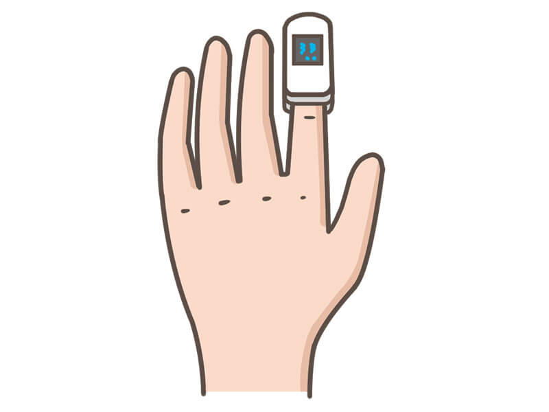 フィンガーチップ型パルスオキシメータがお勧めですが、いざというときに役立つよう普段のいろいろな状況で測定し、それを記録しておくことが重要です。