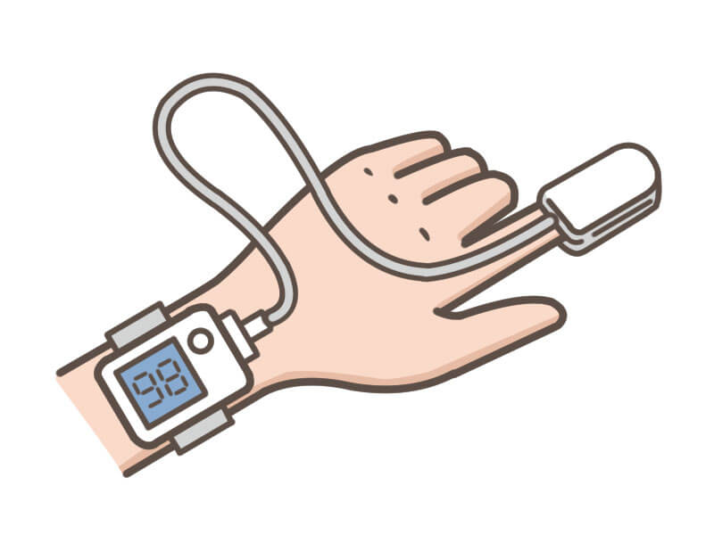 成人であれば、標準的なフィンガーチップ型パルスオキシメータ、小児であれば、その年齢で使用できる小児対応パルスオキシメータが必要です。