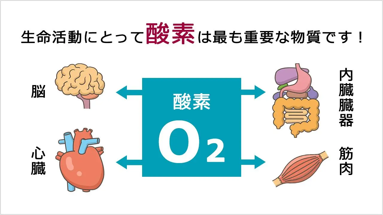 生命の維持には酸素が必要です。酸素が十分に運ばれなければ各種臓器に不具合が生じて、臓器不全や生命の危機に繋がります。