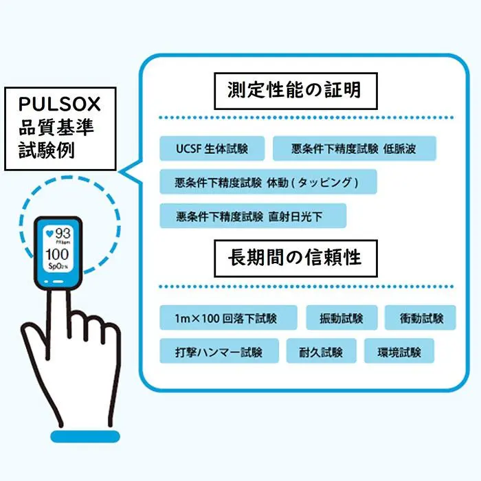 「PULSOXⓇ」のブランド名を使用するためには、製品が以下の厳格な品質と性能基準を満たしていなければならないとコニカミノルタは考えています。