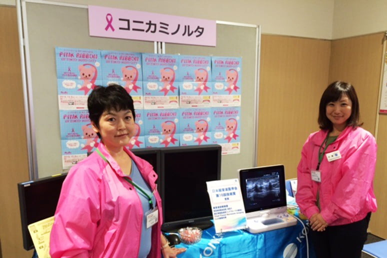 コニカミノルタは、乳がんへの意識を高め、早期発見の重要性を訴えるピンクリボン運動を支援し、世界各地でさまざまな活動を展開しています。
