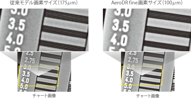 AeroDR fineの特徴である100μmを最大限に活かし、周波数強調処理の改良により、高周波領域を忠実に描出可能に。