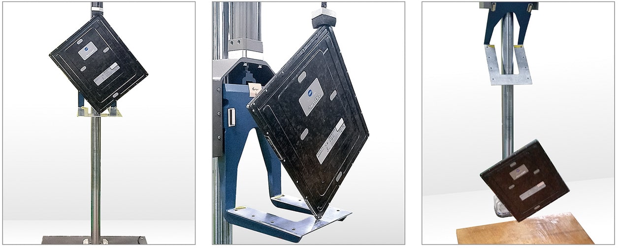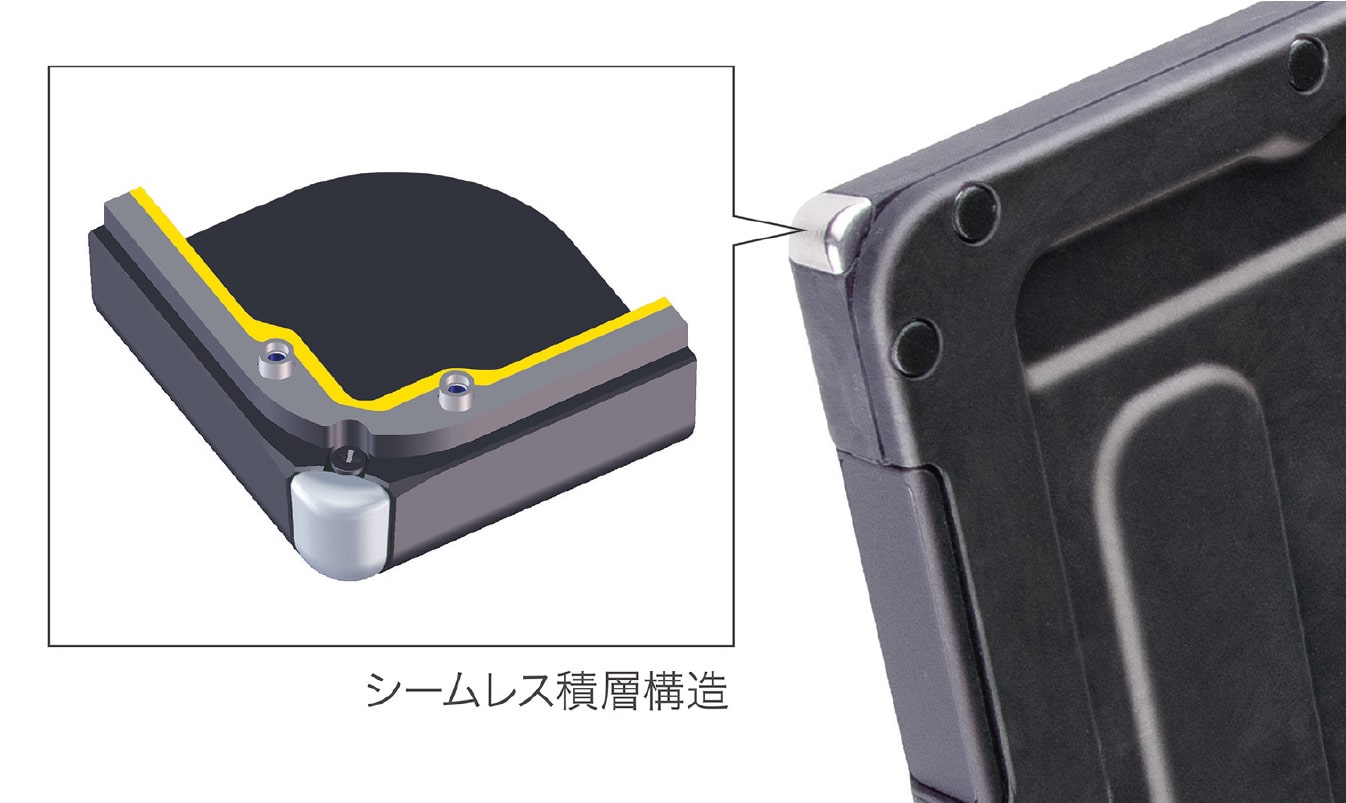 シームレス積層構造により従来モデルから約20%の耐衝撃性能の向上に成功。 米国国防総省MIL規格(MI L- STD- 810G)にパネル全サイズにおいてクリアしました。