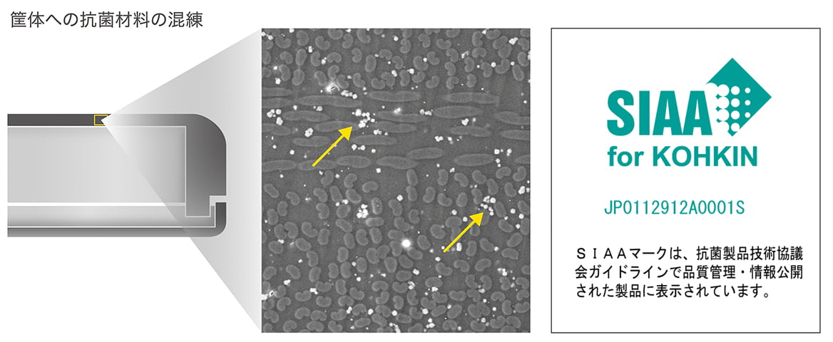 | 抗菌 | 筐体に無機抗菌材料を混錬(JIS Z2801/ISO22196準拠) | |