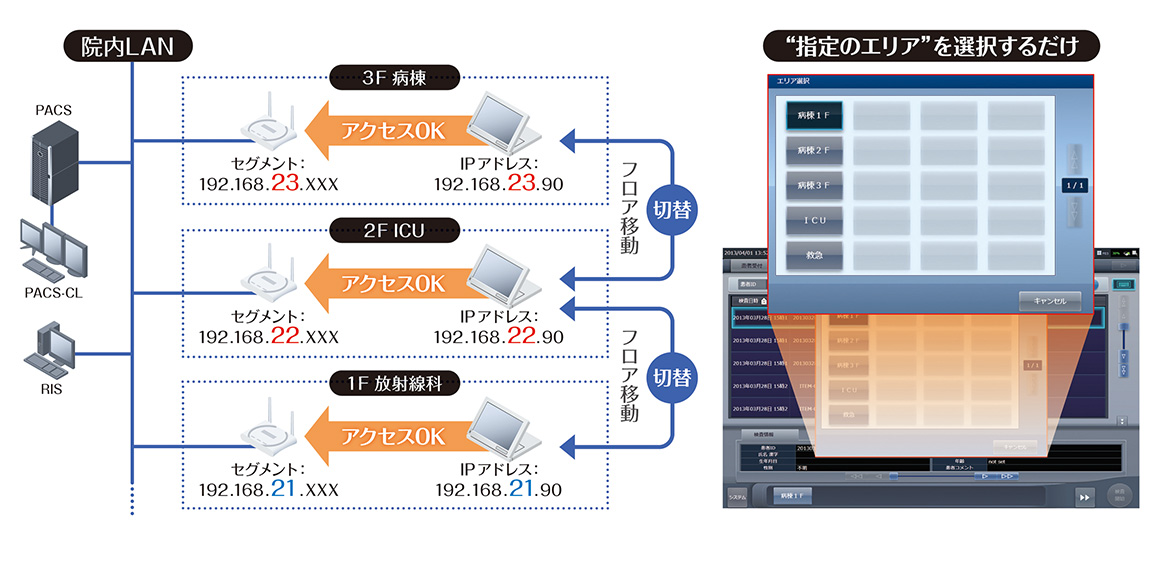 院内のLAN環境の切替機能