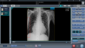 DRの即時性メリットを活かし、再撮影の判断をより迅速に、正確に行うことができる機能です。CS-7では撮影直後に、「肺野欠損」や「体動」といった写損の可能性のある画像を画像解析により自動検出する機能を搭載しています。