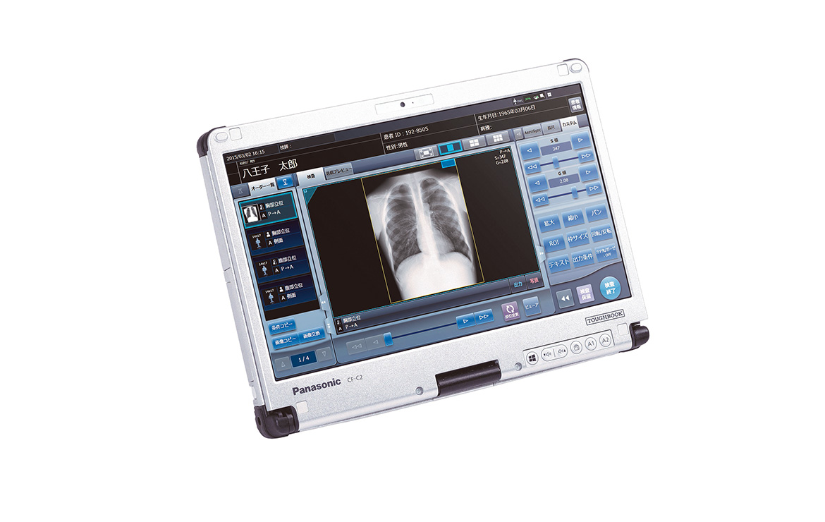 制御するコンソールはタブレット型PCを採用。院内LANとの無線通信も可能なため、RIS、PACSとリアルタイムに連携する事ができます。