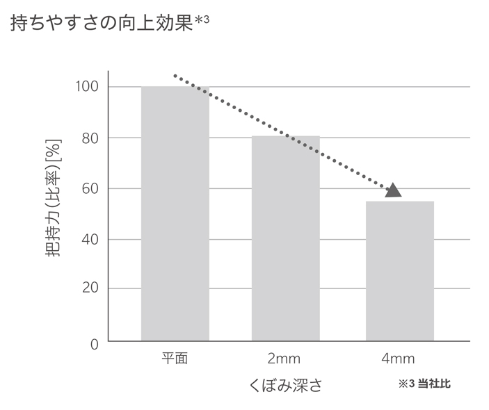 - 全周深さ4mmのくぼみを配置。持ちやすさの向上
