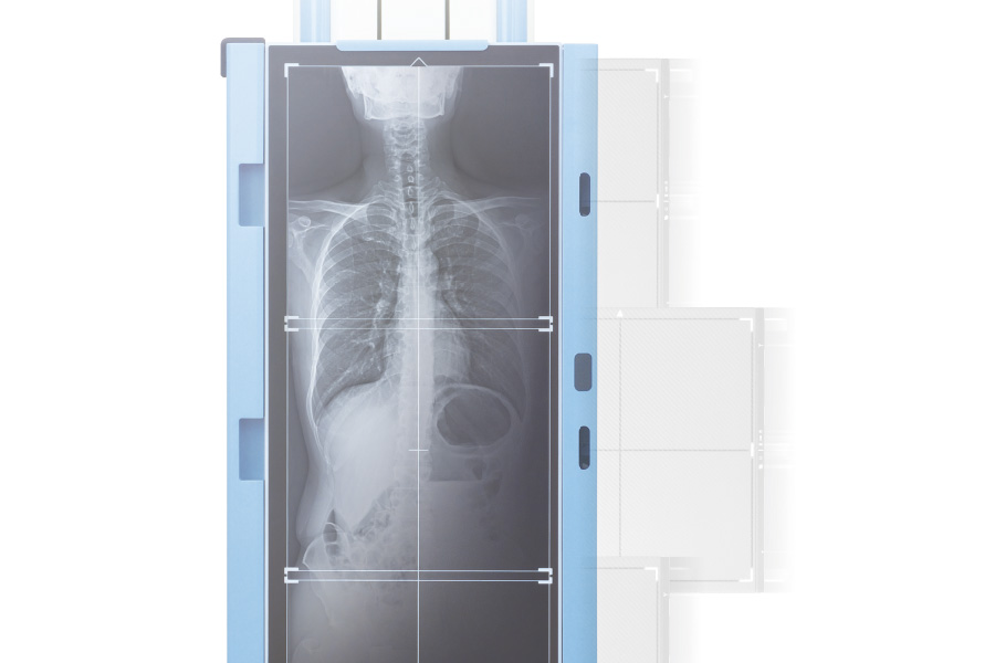 AeroDRパネルを複数枚組み合わせて、1回の照射で長尺撮影を可能にする画期的なシステム。