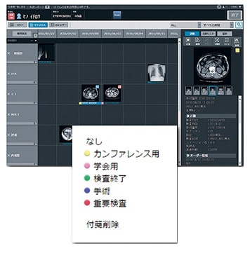術前術後の画像、学会やカンファレンス等で使用したい画像に付箋をつけて分類する事ができます。
