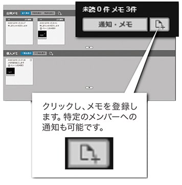 患者情報に紐づけてメモを登録する事が出来ます。 未読や件数も表示されるので、申し送り等で活用出来ます。