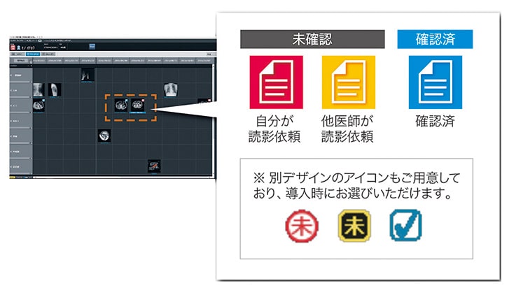 管理画面で院内の未確認状態のレポートを特定することが可能。