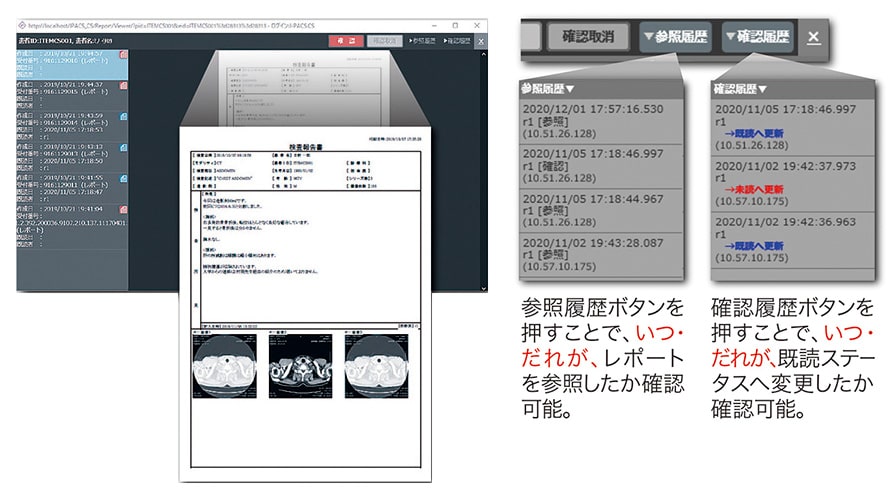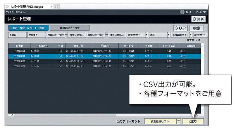 複数の部門システムで管理されている検査レポートの状態を統合管理。 未確認状態のレポートが簡単に把握でき、「見落とし防止」など医療安全に寄与します。