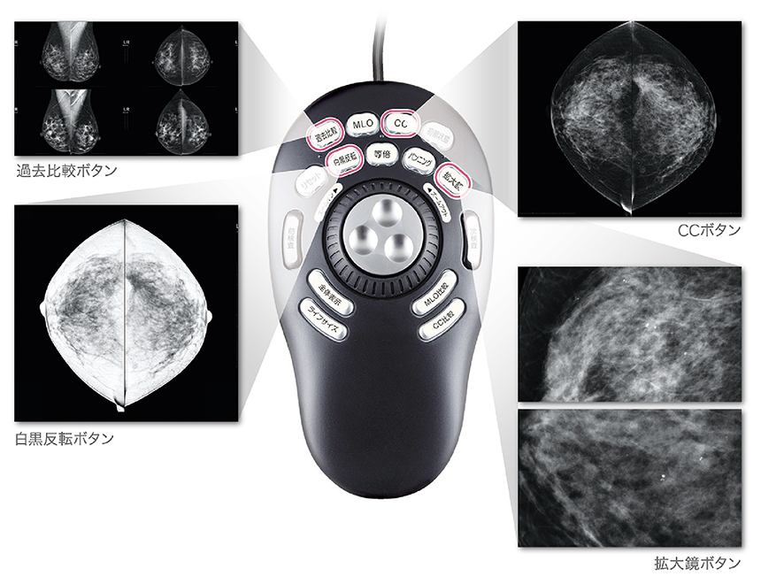 直感的に操作がおこなえる、マンモグラフィ読影に最適な「専用コントローラー」を搭載できます。