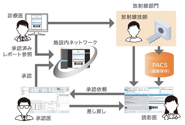 - 研修医による読影後、専門医が承認し、院内公開(差し戻しの運用も可能)