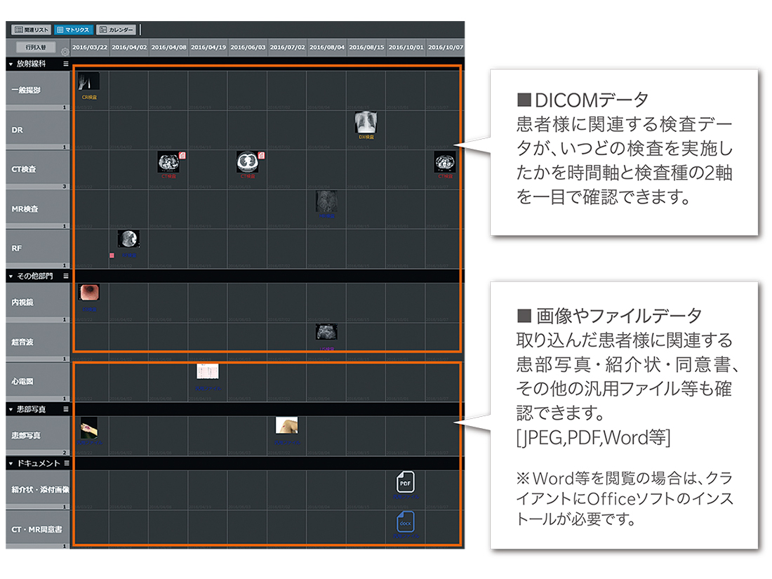 放射線検査以外のデータ(DICOM&Non-DICOM)も管理できます。