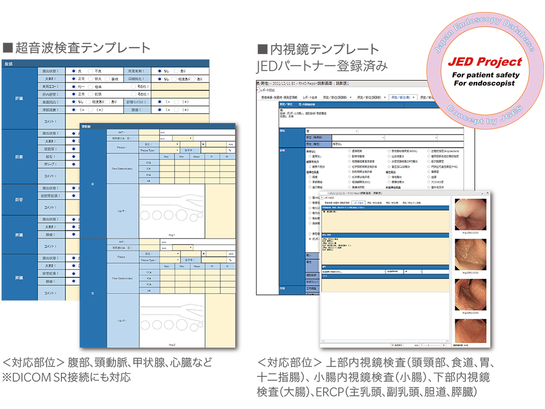 内視鏡、超⾳波検査レポート作成機能*オプション