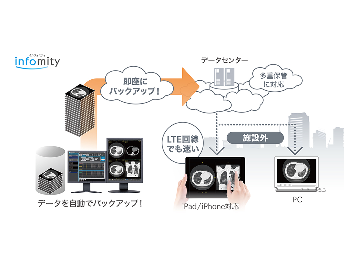 データのクラウドバックアップに対応し、アップロードしたデータは院外からも参照可能です。