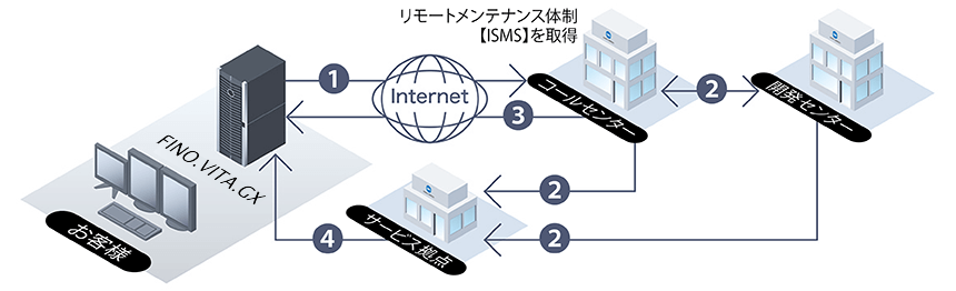 コールセンターが24時間365⽇対応し、遠隔操作で⽇常のオペレーションをフォローします。オンサイト対応時は、全国64拠点に配置されたサービスステーションから、弊社サービスが出動します。