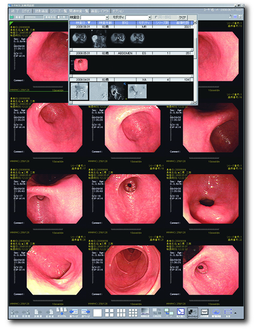 I-PACS CS(オプション)を使用し、患者ごとの各検査結果を時系列で表示することが可能です。I-PACSシリーズの他、各ビューアーとの連携も可能です。