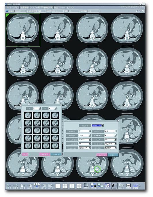 読影画面と同一のフォーマットにて自動的にフィルム出力設定がされます。また、目的に応じて印刷フォーマットの変更やフィルムサイズ・向きなどの変更も可能です。