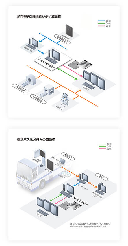 Senciafinderは装置より送信された画像を解析処理し、自動的にPACSへ送信するゲートウェイです。