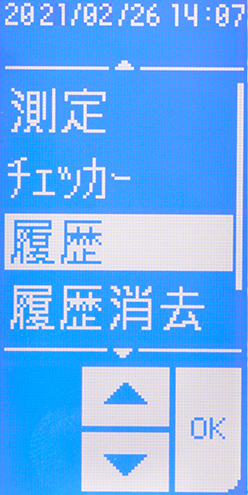 測定結果を最大100件まで本体に保存し、