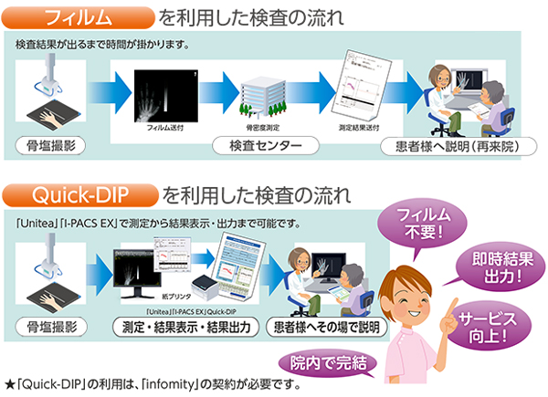 また、腰椎と大腿骨をポジショニング変更することなく、連続撮影できるOneScan機能を搭載したことで、操作者の業務負担を軽減しながら、検査時間の短縮でき、検査枠の増設など高い収益性を実現します。