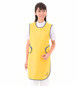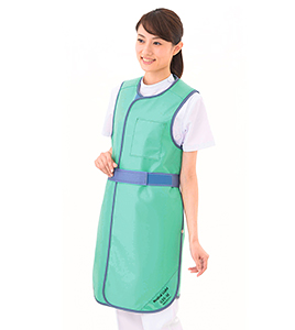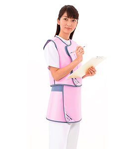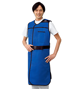 背面のフレームとウエストベルトで肩にかかるX線防護衣の重さを軽減、驚くほど軽い着心地を実現しました。体の前面を守るエプロン型です。