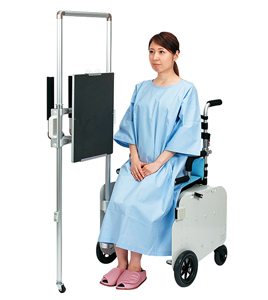 立位困難な被検者でも腰掛けた状態でポジショニングができ、 SAFE-PA撮影法を可能としました。
