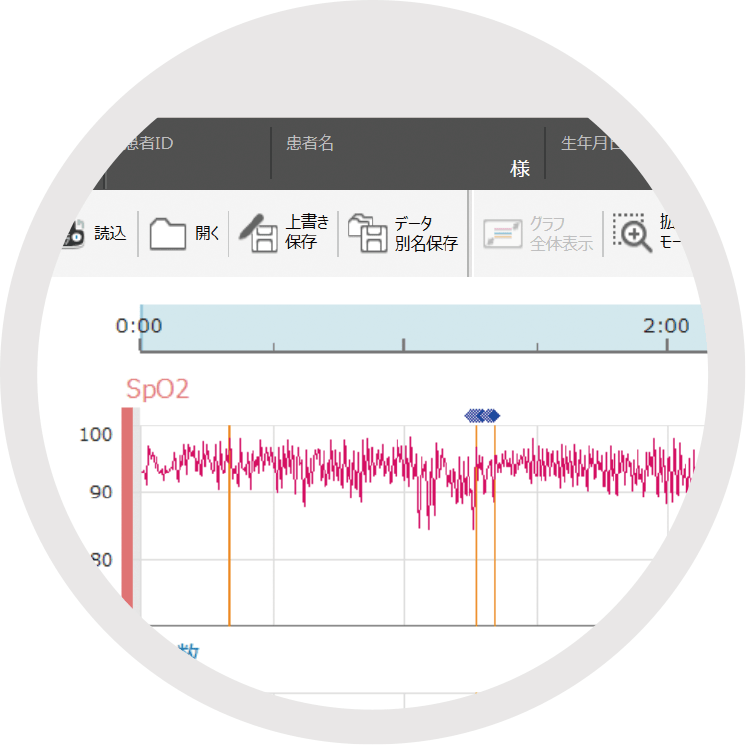労作・歩行・睡眠時などの酸素飽和度の連続評価や在宅患者の指導管理に