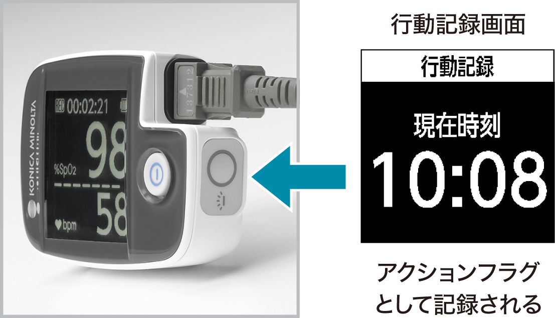 本体のサイドボタンを長押しすると、その時刻が測定データに記録されます。