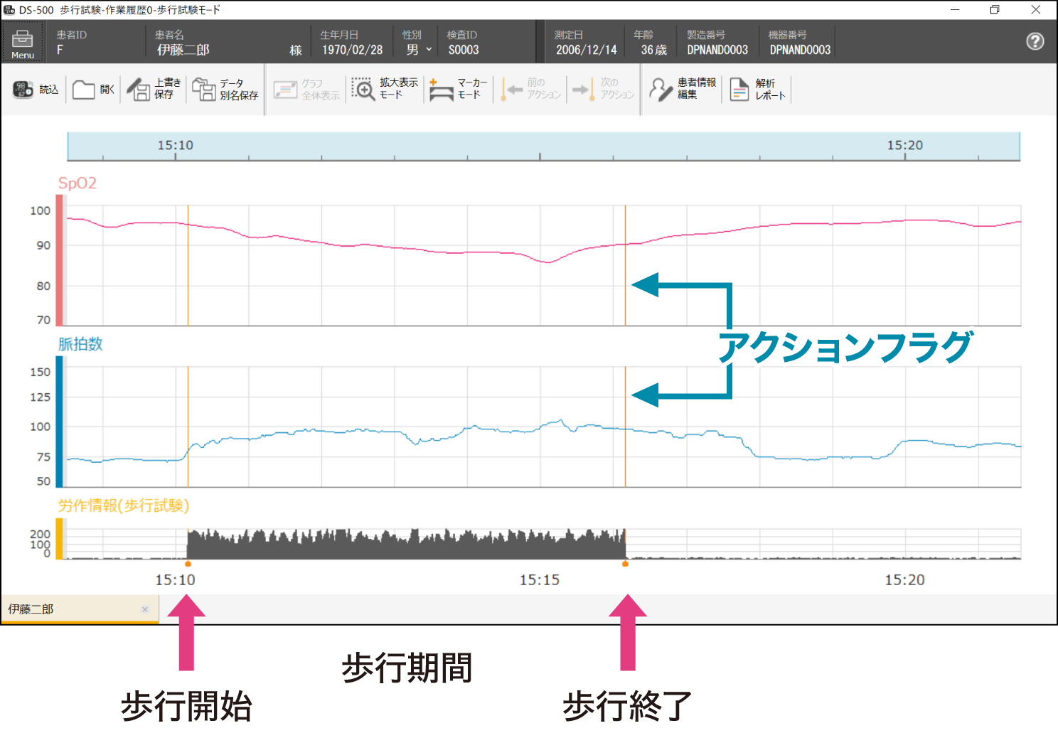 ※PULSOX-500iは腕に装着するため、測定された労作情報は、必ずしも患者の労作を正確に反映しているものではありません。