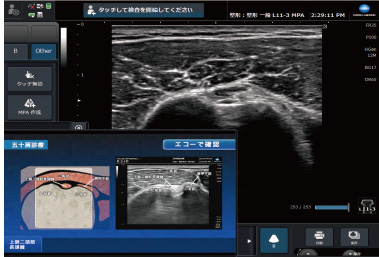 エコー画像と連動したプローブの動きを同じ画面に表示・保存。よりわかりやすく、より詳細な情報共有ができます。
