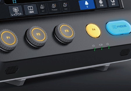 表示深度を変更するだけで、あらかじめ深度毎に設定された画質設定に変更することができます。例えば、表示深度を浅くすると高周波に、深くすると低周波や台形走査へ自動的に切り替えることができ、ワークフローの効率化に貢献します。
