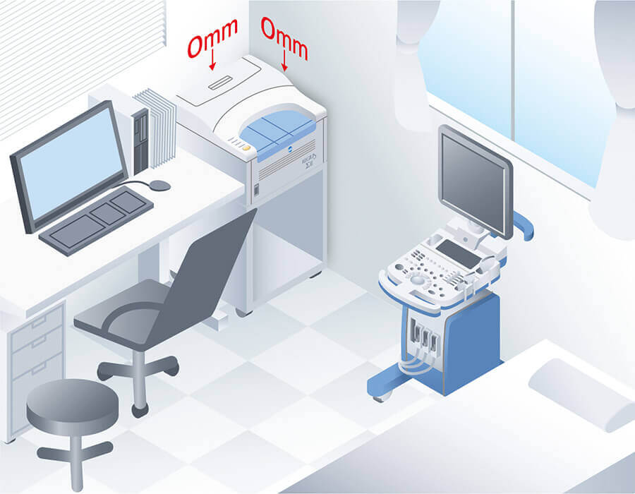 卓上型CR装置「REGIUS ΣⅡA」は、28kgの軽量コンパクト設計を実現しました。スペースがすくない動物病院様でもカンタンに設置が可能です。専用架台もご用意しています。