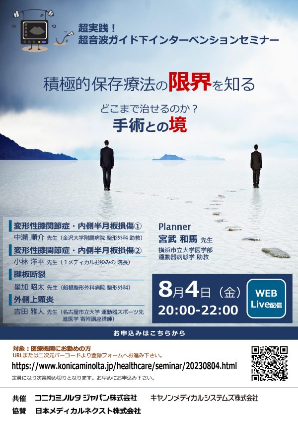 今回のテーマは「積極的保存療法の限界を知る」。様々な症例に対して保存療法と手術の境はどこなのか。また、保存療法でどこまで治せるのか。講師の先生方より、実際に行っている運動器エコー診療のコツをライブレクチャーを交えながらわかりやすくご説明頂きます。