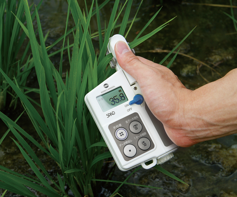 稲の葉に含まれている葉緑素(クロロフィル)量を葉を痛めることなく簡単に測定が可能。