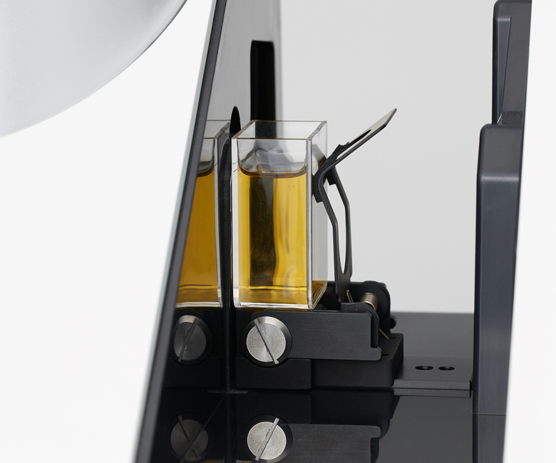 お茶やジュース、ソース、スープなどの液体(透過色)の色管理を透過測定用のガラスセル(別売付属品)を使用することで実現します。