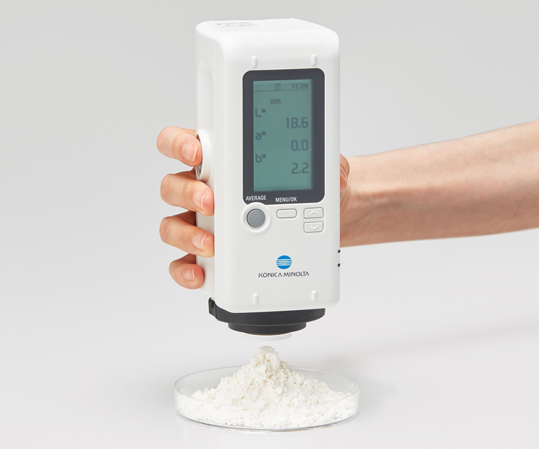 小麦粉や調味料、コーヒーなどの粉体から米のような粒状の食品にいたるまで色管理が可能。