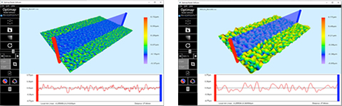 表面粗さ測定モードの際、Optimap™ Reasder Softwareでは測定時に指定したフィルタリング処理に応じた3Dマップを表示できます。