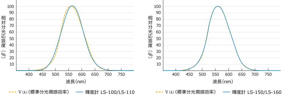 LS-150/LS-160は、人間の目の感度に対応する標準分光視感効率V(λ)に合致した感度を持つセンサーを新たに搭載し、そのセンサー出力を使用する高精度な輝度計です。