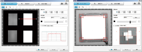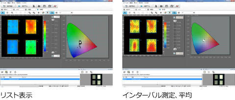 前ソフトウェアCA-S20wでは、階調制御バーを一律にしか調整できず、個々の対象物の明るさに応じて何度も階調変更して表示する必要がありましたが、CA-S25wでは、評価範囲ごとに階調制御バーを調整できますので、明るさの異なる測定対象物を複数並べた場合でも、一度にムラを観察することができます。