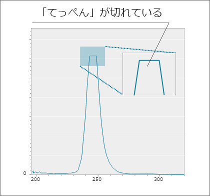 これまでハイパワー光源の測定には1つ困ったことが起こっていました。それは、ピーク波形に露光レベルを合わせると、裾野が感度不足となり、ノイズが増えてしまうことです。