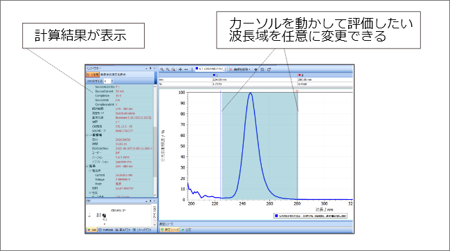 自由に波長範囲を切り取って評価できます