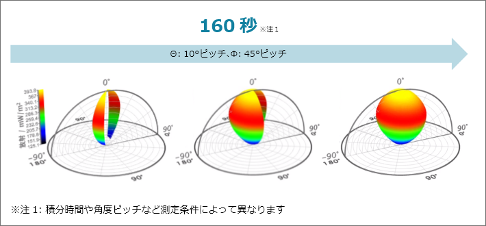 つまり、「紫外線を広範囲もしくは局所的に充てたい」といった目に見えない光の分布特性をデータで把握することにより、的確な商品開発が行えるようになる、ということです。