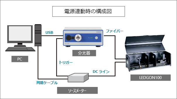 常時点灯では測定中に素子の温度が上昇し、光出力や分光波形が変化してしまいます。これを避けるためにアニール処理を施す方法もありますが、LEDGON100は測定時だけ点灯させることで発熱の影響を極力抑える工夫をしていますので、短時間でより安定した出力結果を得ることができます。
