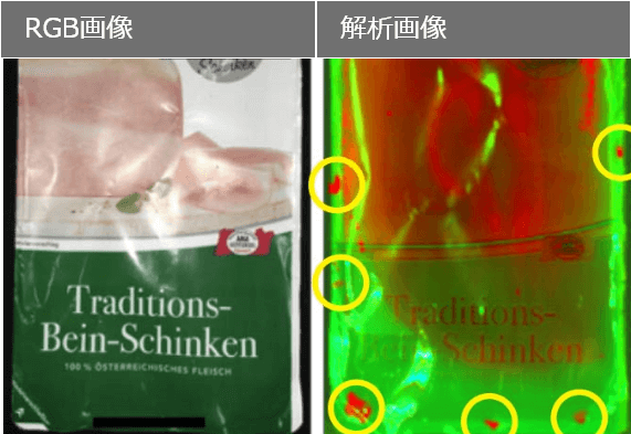 食品のパッケージの異物混入検査やパッケージの品質試験において、ハイパースペクトルカメラが活用されています。