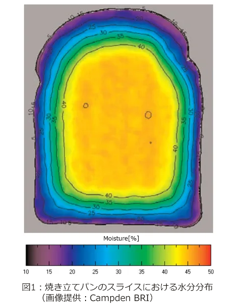 パンの中心部に向かって水分量が増加し、外側のパンの耳の部分は水分が少ないことが視覚的にわかります。