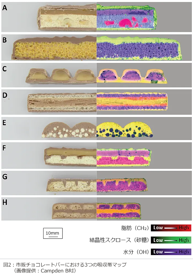 図2は市販されている複数のチョコレートバーをハイパースペクトルイメージングを用いて比較分析を行った例です。